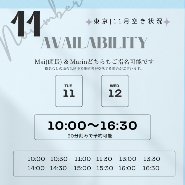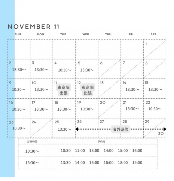 【東京院11月ご予約枠開放のお知らせ】